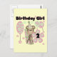 Un mono chica rodeado de globos rosados y flores se sienta en algunos regalos de cumpleaños y el texto dice "Chica de cumpleaños 2" en camisetas de 2º cumpleaños de mono, trajes de ropa, tarjetas, bolsas de tote, imanes y más.
