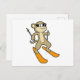 Postal Mono como esquiador con esquíes