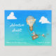 La aventura espera al niño que reciba esta genial invitación de globo aerostático en forma de postal.