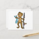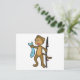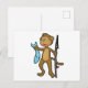 Postal Mono pescando con caña de pescar y pez