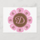 Monograma de diseño de flores rosadas y marrones en bolsos de té, tazas, mousepads, camisetas y más con la "D" inicial. Estos artículos iniciales en monograma hacen grandes regalos a los chicas en la fiesta de bodas y a la madre y abuela de la novia y el novio también!