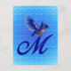 Monograma inicial M con una postal de pájaro azul bonito. Haga clic en el Personalizar para agregar su mensaje en la parte posterior y frontal. Ideal para guardar la fecha y las nuevas invitaciones de direcciones o para recolectar. Si necesitas ayuda o tienes alguna solicitud, por favor contacta conmigo. Esta imagen está disponible en muchos productos de mi galería.