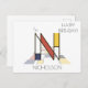 Hermoso, divertido y artístico monograma. Aquí está la letra "N". Estilo neoplasticismo, o De Stijl, decoración artística de línea y color, el pájaro divertido se sienta sobre la letra. El campo de arte está ubicado debajo de la letra. El nombre del template "NICHOLSON" está ubicado debajo de la imagen. Texto "Happy Birthday!" cerca de la imagen. Puedes cambiar o eliminar todos los textos y también puedes cambiar la imagen. Tarjeta postal única y personalizada para un cumpleaños u otro evento. Siéntete libre de usar el botón de color azul "Editar diseño" o "Personalizar" (según sea el caso) para cambiar la fuente, el color o la posición del texto del template. Sé creativo, personaliza, compra uno y sé feliz.