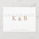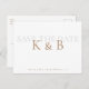 Monograma blanco simple guardar la fecha. Postal. Texto dorado y gris.