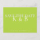 Chartreuse simple monograma guardar la fecha. Postal. Dos tonos de texto.
