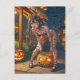 Postal Monstruo de Halloween Jack-o-Lantern y chica murci