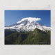 Postal Montaña cubierta de nieve con cielo azul y bosque