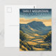 Captura la majestuosa belleza de Sudáfrica con esta impresionante tarjeta postal de viaje de Montaña de la Mesa. Este cautivador diseño ilustrado presenta la icónica montaña de cima plana, dominando el vibrante paisaje de Ciudad del Cabo. El arte estilizado muestra hermosamente los valles ondulados y el paisaje exuberante que conducen a esta increíble maravilla natural.