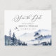 Postal Montañas acuarelas Boda forestal Guardar la fecha