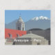 Las montañas de Arequipa, Perú, vistas desde un tejado de la Plaza de Armas. En primer plano, se ve una de las numerosas iglesias históricas de la ciudad, con su techo rojo profundo coronado por una cúpula y una cruz delicadas. Aunque es verano y bastante caluroso caminando por la hermosa ciudad colonial, las altísimas montañas todavía están nevadas.