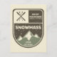 Diseño de la placa de esquí SnowMass con detalles de elevación y ubicación.