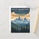 Experimente la belleza escarpada de Norteamérica con esta impresionante postal de viajes de Rocky Mountains Canada! Este cautivador diseño ilustrado presenta las majestuosas Rockies Canadienses, exhibiendo alzas, picos nevados y vastos bosques de siempre verde.