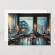 Perfecto regalo para los amantes del viaje y del café. El cuadro evoca el ambiente de una cafetería en North Beach, San Francisco, que mezcla realismo con elementos modernistas. El interior está salpicado de tonos azules y grises suaves que reflejan el ambiente nebuloso típico de San Francisco. El mobiliario combina la madera clásica con un diseño moderno y elegante, y ofrece a los clientes un ambiente relajado y contemplativo. Las paredes están decoradas con obras de arte abstractas que dan un aire de sofisticación. Fuera de las grandes cristaleras de los cafés, se ve el icónico barrio de North Beach, con sus vibrantes calles suavizadas por el crepúsculo y la niebla. Sombras suaves son proyectadas por una iluminación tenue desde las lámparas de techo y las luces de la calle, lo que contribuye a una atmósfera serena y reflexiva dentro de este refugio urbano.