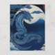 Atmospheric postcard featuring a majestic blue dragon rising beneath the moon near Mount Fuji in a traditional Japanese-inspired composition.