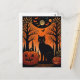 Un gatito negro y elegante se sienta bajo una luna llena y brillante, lanzando una silueta enigmática contra el vibrante cielo naranja. Los árboles de silueta y las calabazas esparcidas por debajo le dan un toque de brillo a la escena. ¿Sabían que en el antiguo Egipto, los gatos eran venerados como animales sagrados y a menudo estaban asociados con la diosa Bastet, que representaba protección, placer y buena salud? Esta obra de arte capta la mística de la noche de Halloween y la duradera conexión del felino con lo sobrenatural.