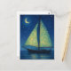 Postal Moonlit Sailboat - Pastel Painting Style Night Art