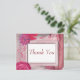 Esta postal rústica de agradecimiento morado tiene la imagen de un cuadro de madera, con pergamino como imágenes de papel en el fondo, flores y encaje blanco. La palabra "Gracias" está escrita dentro del marco de la imagen con un tipo de letra púrpura bonito. La parte posterior de la postal es rosa con texto púrpura. ¡Haga su pedido hoy mismo! Diseño de RSVP: WeddingsbyRhoadie Obra artística temática de otoño en el frente: Oberholster Venita