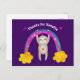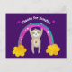 "Gracias por colgar". Una imagen dulce y lúdica de un lindo kawaii, perezoso colgado en un arcoiris colorido y boho con una tipografía escrita a mano blanca sobre un fondo oscuro de cassis morada ayuda a expresar tu aprecio. Un sol sonriente, amarillo y una tipografía gris suave están en la parte trasera. Gracias a sus invitados con estas adorables, modernas y simples tarjetas postales de cumpleaños personalizados neutrales en género. Escriba su copia personal utilizando la plantilla sencilla que se le ha proporcionado o elimine completamente para su nota manuscrita. En esta colección especial y divertida también hay disponibles invitaciones, servilletas, platos, pegatinas, juegos de fiestas y otras mercancías. ¡Garantizado para añadir un toque de diseño a tu correspondencia! Puede personalizar fácilmente esta postal de agradecimiento de soledad personalizando la parte posterior utilizando la plantilla fácil de usar o eliminando para una nota manuscrita. Por favor, envíame cualquier pregunta o petición.