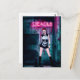 "Deadly Rebel" Este atrevido diseño inspirado en el ciberpunk presenta una figura femenina feroz que se mantiene confiada en un entorno urbano ardiente. El cartel de neón "MUERTO" aparece encima de ella, coincidiendo con la intensidad de su mohawk rojo y su vestido con emblema del cráneo. Las tejas oscuras y salpicadas de graffiti y las tuberías industriales crean una atmósfera distópica y cruda que mezcla la moda del punk con una estética de nódulos futurista.