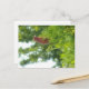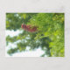 Aleta roja con plumas encaramada en un arbusto verde, St Catharines, Ontario