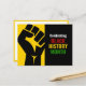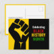 Tarjeta postal motivacional del MES DE LA HISTORIA AFROAMERICANA que muestra un gráfico de puño negro levantado sobre un rico fondo amarillo a la izquierda, y CELEBRANDO EL MES DE LA HISTORIA AFROAMERICANA en tipografía blanca, roja, amarilla y verde en negrita sobre un rico fondo negro a la derecha. En el reverso hay un saludo PERSONALIZABLE que puedes personalizar con tus propias palabras. Una excelente manera de mantenerse en contacto durante la temporada del Mes de la Historia Afroamericana. Otras variedades de tarjetas, invitaciones, ropa y decoración del Mes de la Historia Afroamericana están disponibles.