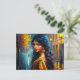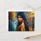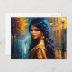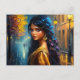Motivos indios. Chica indio con pelo largo negro y azul y ojos azules en el fondo de una calle nocturna de la ciudad. Una idea original orientada al hogar también es adecuada para la oficina.