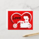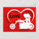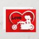 Pareja de silueta montando una motocicleta con una postal de corazón y amor en rojo, negro y blanco ~