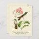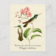 Postal con un ilustracion vintage de historia natural de Antoine-Germain Bevalet, c. 1874, del colibrí Montaingem (Oreopyra hemileuca). Dos colibríes verdes, marrones y blancos se colocan en la rama de una planta tropical de la bignonia con flores rosas, sobre un fondo de textura de pergamino amarillo claro. Limpiado y mejorado digitalmente, conservando sus características vintage. Presenta nombres comunes y científicos en fuentes decorativas.