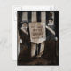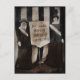 Dos mujeres del movimiento sufragio posan al lado de un cartel con bandera como telón de fondo.