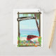 Afiche de viaje vacacional de Mozambique de un viejo barco pesquero añejo sentado en una playa de arena africana.