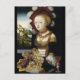 Elegante y hermosa joven rubia con vestido impresionante y joyas de oro con sombrero rojo y plumas blancas, copa de vino tinto, y paisaje del lago en el fondo por el pintor alemán Lucas Cranach el Viejo (Salome) 1530. Diseño clásico de cata de vinos, uvas rojas amarillas blancas, vides, hojas verdes de otoño. Este diseño de clase renacentista es perfecto para bodas de otoño, celebraciones de aniversario, cumpleaños Sweet 16, guardar la fecha, tarjetas de agradecimiento, baby showers, fiestas navideñas, reuniones familiares. También se puede utilizar como invitaciones de negocios para nutricionistas, dietistas, catering, servicio de alimentos, preparación o restaurante, catering, industrias vinícolas.