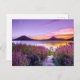 Postal muelle de madera marrón entre el campo de flores d