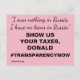Texto: "No tengo nada en Rusia. No tengo préstamos en Rusia". Muéstranos tus impuestos, Donald. #TransparencyNow La resistencia y la lucha por la transparencia continúan.