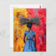 Una mujer africana con un vestido colorido que lleva un bulto de leña. Una vibrante representación de la vida diaria y las tareas tradicionales