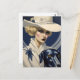 Postal Mujer Art Deco en blanco con perro negro, era Gats