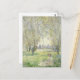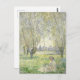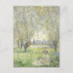 "Mujer sentada bajo los sauces" (1880) de Claude Monet captura un momento tranquilo de descanso bajo altos sauces. La escena muestra a una mujer sentada en una luz moteada, rodeada de hojas verdes y suave luz dorada que se filtra a través de las ramas. El estilo impresionista de Monet transmite movimiento y atmósfera a través de pinceladas rápidas y luminosas.