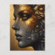Una postal para mantenerse en contacto con un amigo o familiar. Ai arte que representa a una hermosa mujer con flores de oro en su cabello y un aspecto místico.