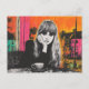 Postal Mujer Colorida Con Café