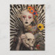 Una mujer posa con un cráneo frente a un fondo blanco y negro fresco generado por IA de arte