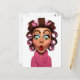Figura de arcilla de una mujer que usa rizos hechos con arcilla de polímero que se hornean en un horno y se pintan con acrílicos. El producto final es fotografiado y mejorado digitalmente.