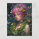 Una mujer adorable con el pelo púrpura cubierto de hiedra y mariposas que se genera IA