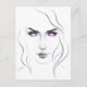 Postal Mujer con ojos extraños púrpura arte de la línea M