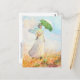 Postal de arte fino con la pintura, Mujer con Parasol frente a la derecha (también conocida como Estudio de una figura al aire libre, frente a la derecha) (1886) de Claude Monet (1840-1926), pintor impresionista francés. Retrato de una mujer sosteniendo una sombrilla verde parada en un prado primaveral con un brillante cielo azul.