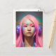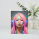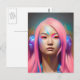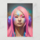 Una mujer con cabello rosa y audífonos púrpura IA generó pintura de retratos