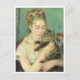 Esta hermosa pintura de August Renoir muestra desde cerca de la cintura hacia arriba, una joven mujer vestida de blanco se sienta en un sillón abrazando a un gato de rayas marrones y negras. La pared que hay detrás es de color verde marino y el borde de una cortina floral amarilla bordea el borde izquierdo del lienzo. El cabello marrón claro de la mujer se levanta y su piel pálida se acentúa con mejillas color rosa. Los tonos blancos y azules del vestido y pañuelo de manga corta de la mujer atados alrededor de su cuello contrastan con el rojo borgoña del sillón detrás de ella. La parte inferior del cuerpo del gato se inclina en el tronco del brazo izquierdo de la mujer. Transfiera esta imagen al producto que desee. Mis excelentes imágenes de arte provienen de galerías públicas y están optimizadas a alta resolución para proporcionar una impresión de calidad. Utilice las herramientas de diseño para agregar texto personalizado o personalizar la imagen. Para más imágenes de arte, visita mi tienda Art_Collection_21 y navega por las colecciones.