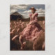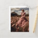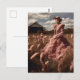 Postal Mujer con un vestido de plumas rosa en un campo Vi