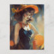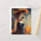 Postal Mujer Con Vestido Negro Con Correas Naranjas