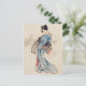 Esta postal muestra una obra de arte japonesa de una mujer con un kimono, de Katsushika Hokusai.