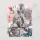 Hermoso collage romántico de una mujer con un elegante vestido vintage con rosas rosas rosas rosas y una mariposa. Mujer elegante de la Belle Époque en París. El color de fondo rosa es el personalizable.