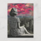 Postal Mujer en la cima de las nubes rosadas de la ciudad